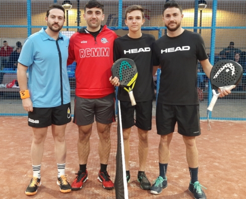 Por último, en la máxima categoría masculina, Armando Moya y Javier Aznar se presentaban en la final con una trayectoria impecable sin haber cedido ningún set. La otra pareja, compuesta por Francisco Javaloy y Antonio Gallego, tan solo habían cedido un set hasta llegar a este desenlace del torneo. La final fue apasionante y tras más de 2 horas, con un público entregado y disfrutando del partido, la victoria fue para Armando y Javier que vencieron a Francisco y Antonio con un resultado de 7/6 2/6 6/3.
