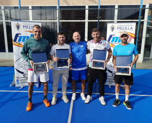 El melillense Jesús Moya Sos y el malagueño Jairo Bautista Ortiz, se proclaman campeones del Internacional C.A.M., ante el también melillense Pablo Castillo Valverde junto al canario Cándido Jorge Alfaro.