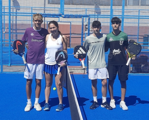 El calendario de pádel de menores, continuó su andadura con la cuarta prueba de la temporada. Se disputó los días 6 y 7 de Julio. Esta vez la participación fue algo más baja que en pasados torneos debido a las vacaciones de verano, pero aún así se animaron a participar una treintena de jugadores, agrupándose en 3 categorías formato liguilla.